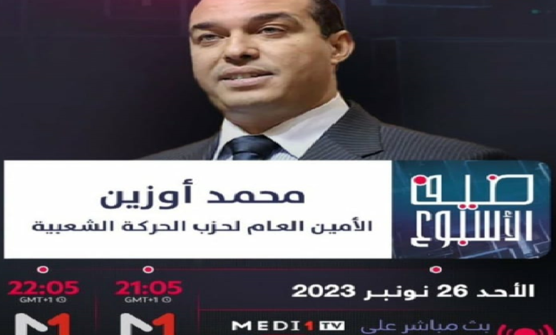 Mohamed Ouzzine, Secrétaire général du parti du Mouvement Populaire, sera l’invité de l’émission « Dayf Al-Ousbouû »(Invité de la semaine), qui sera diffusée par la chaîne de télévision Medi1tv le dimanche 26 novembre 2023.
